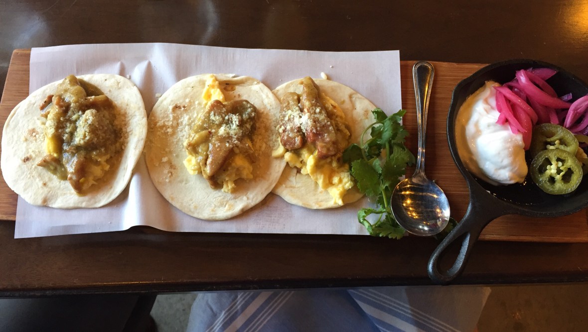 Pork Belly Tacos for brunch at Bosscat in Houston