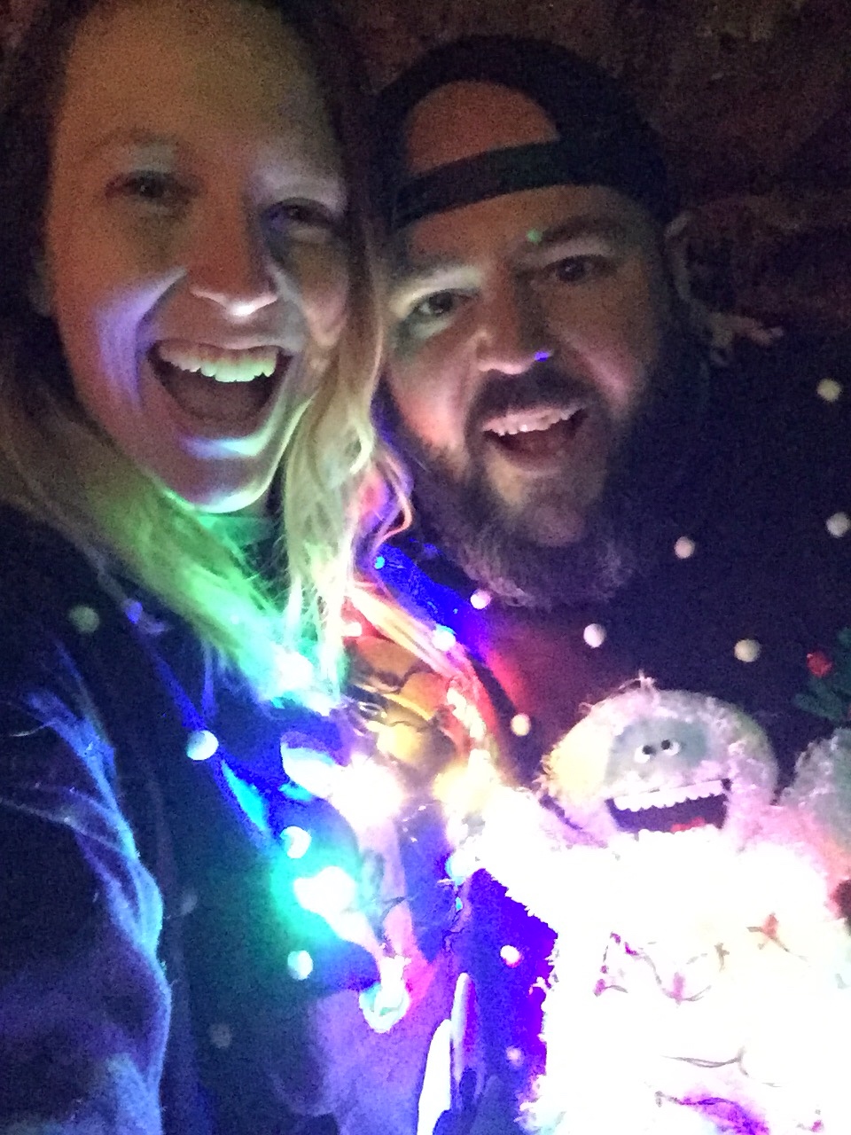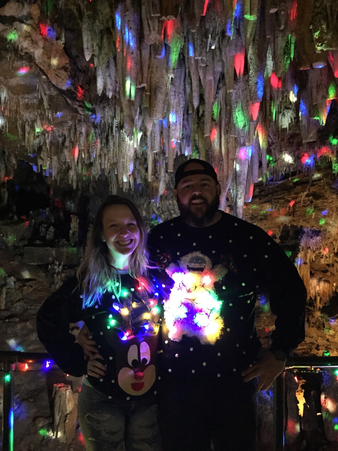 Right outside of Knoxville there is a cave that is only open for 6 days out of the year and it is full of Christmas lights. Brian and I made a trip out of it! It was so fun! So random to walk around an underground cave full of lights. We fit it with the decor in our light up sweaters! Merry Christmas!