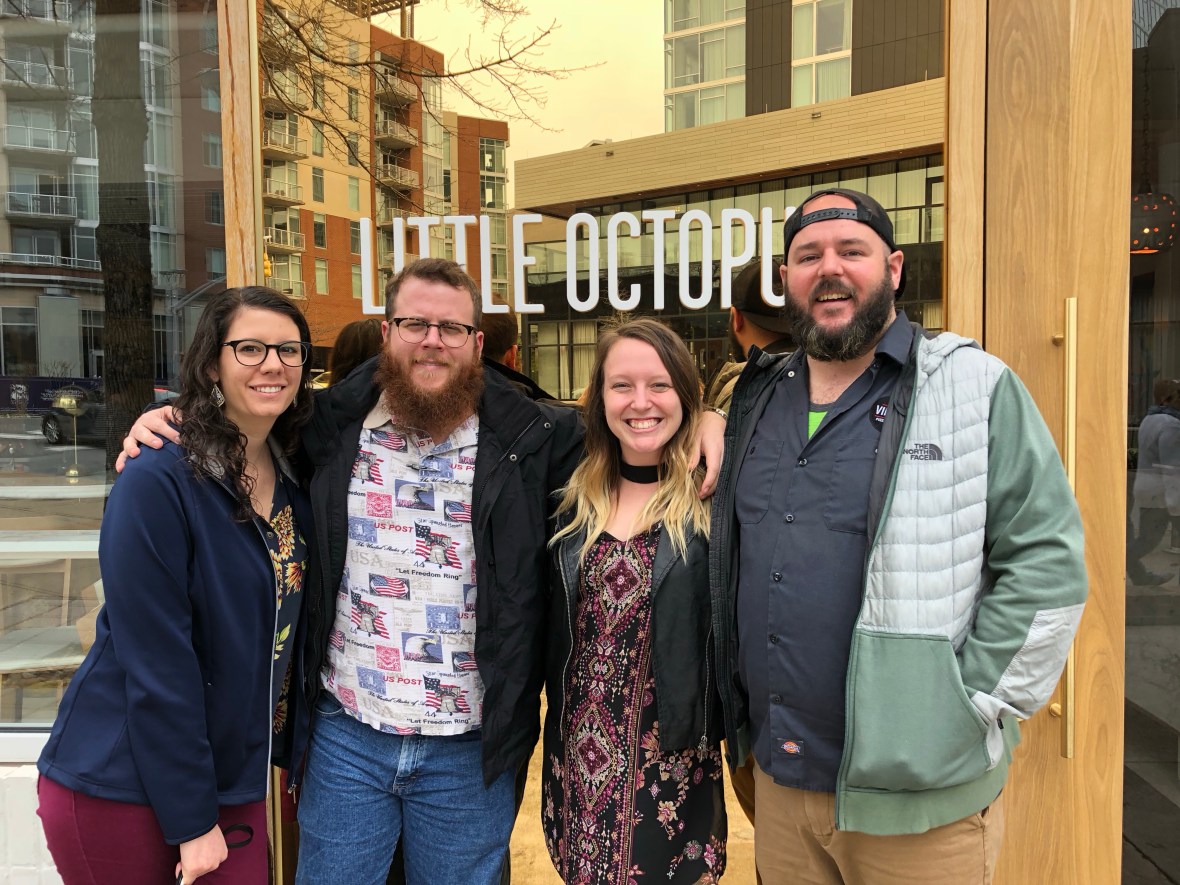Sunday Funday with Brian, Will and Nichole! Little Octopus for brunch. LA Jackson for views of the city. Two Bits for games. Dawg house for dancing and watching the Duke basketball game. Dinner at Cafe Roze. Drink at Urban Cowboy Public House.