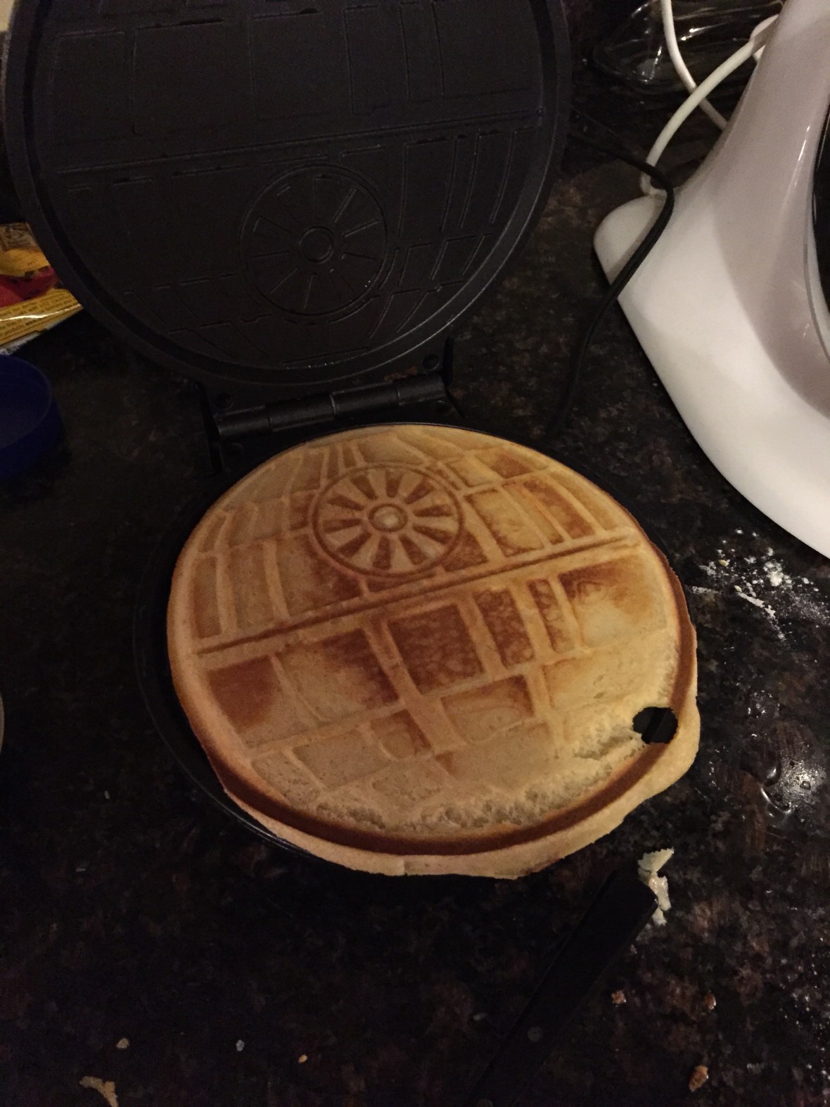 We got a new Star Wars waffle maker and wanted to have a waffle night! I made bourbon mimosas and babe worked on the waffles. It was the first time we ever used it so it took a few tries to get the texture right. Brian made homemade whipped cream and we put a ton of toppings on the waffle! Such a fun night!