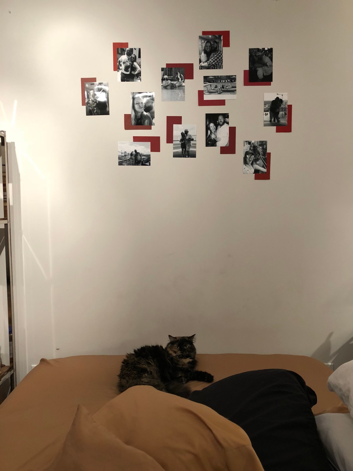 - Creative project night This one is mixed in with #19. I looked through pictures and found a bunch of cute ones of me and Brian then I turned them into black and white. Walgreens helped me with this project with quick printing. The red frames are home depot paint chips!