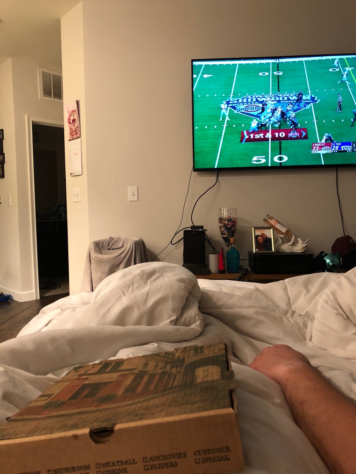 After football, we went to Edley’s for nachos! Later we went home and napped then ordered Domino’s. So much delicious pizza eaten on vacay.