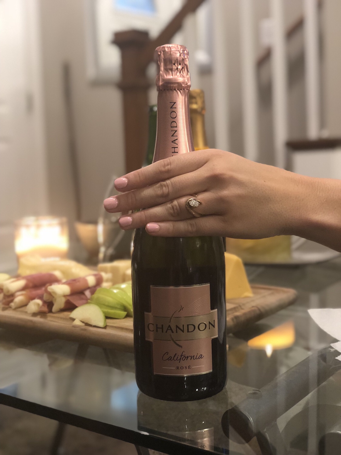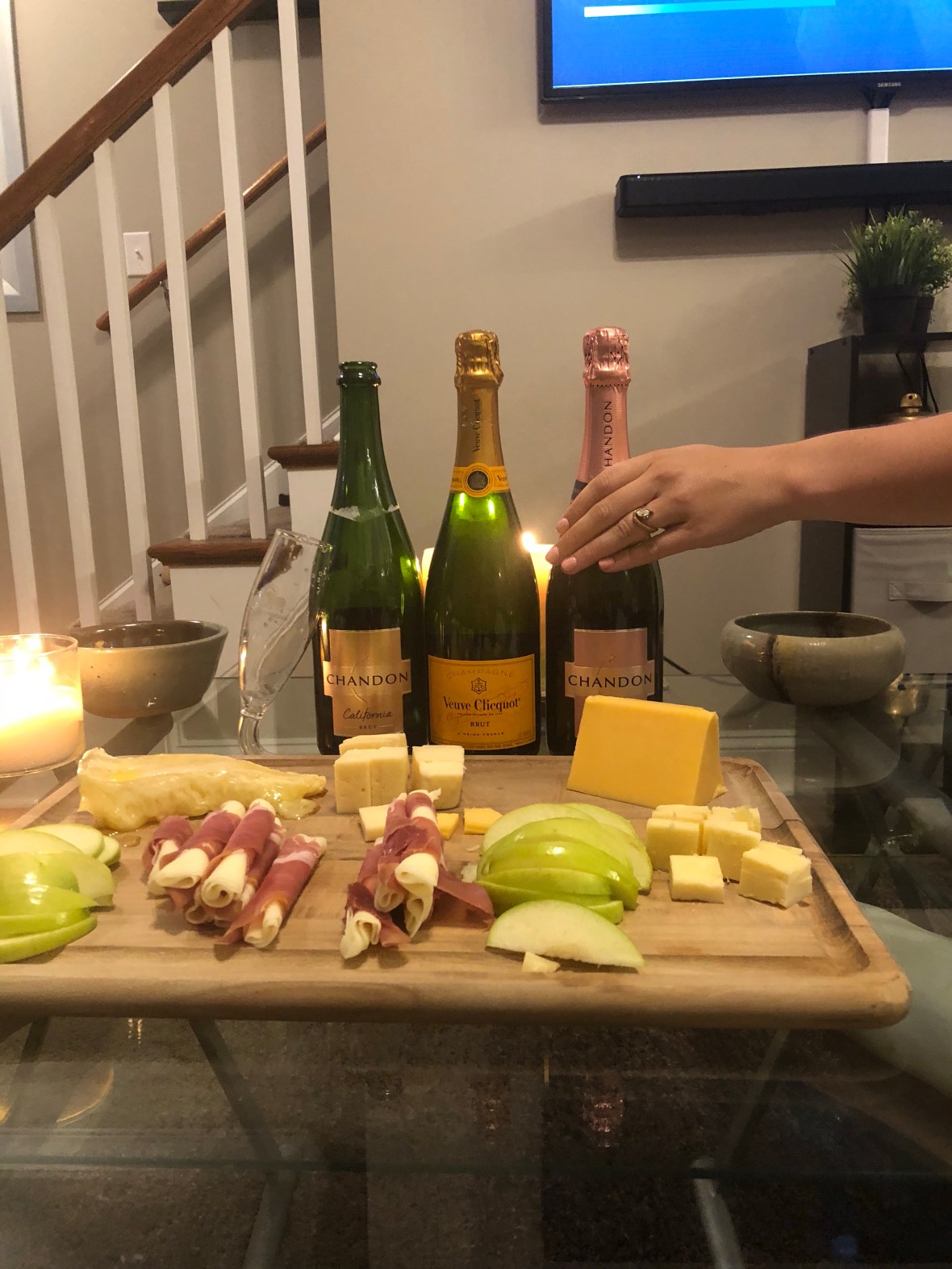 One of my best friends got engaged recently so we had a girls night to celebrate and hear the full engagement story! We are lots of cheese and drank champagne and took so many pictures of her ring! The night was so fun! Super classy to chambong with Veuve Cliquot.
