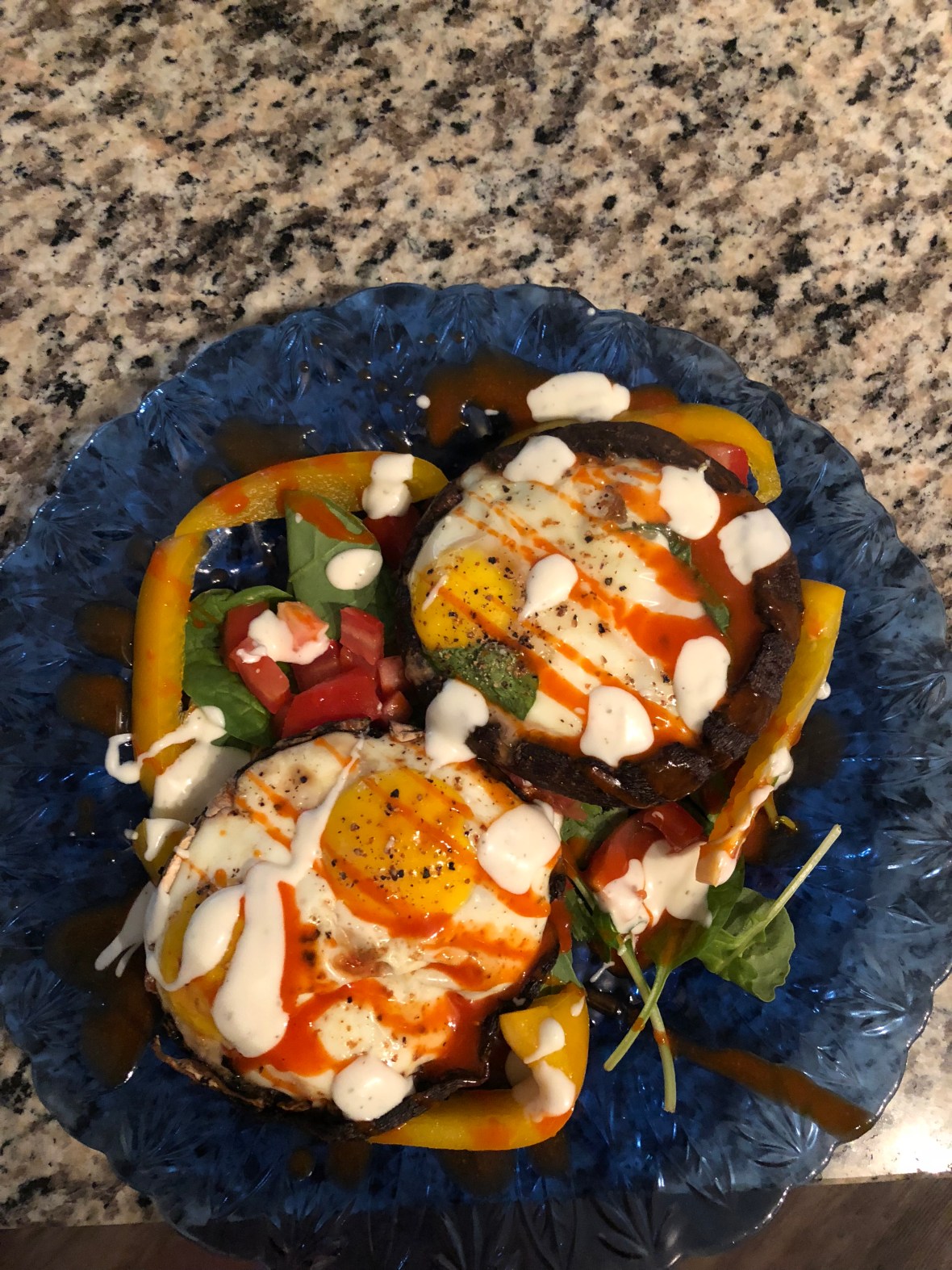 Stuffed portobello mushrooms for breakfast.
