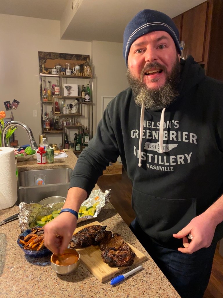 Date night at home – Yesterday Brian was off and he made dinner for us! We grilled steak on the rooftop of our building in the cold and it was cooked perfectly! Brian also grilled some zucchini and squash and made sweet potato fries. The steak was def my fave but the whole meal was delicious. He is so good at cooking so I love whenever he has the time to do it!