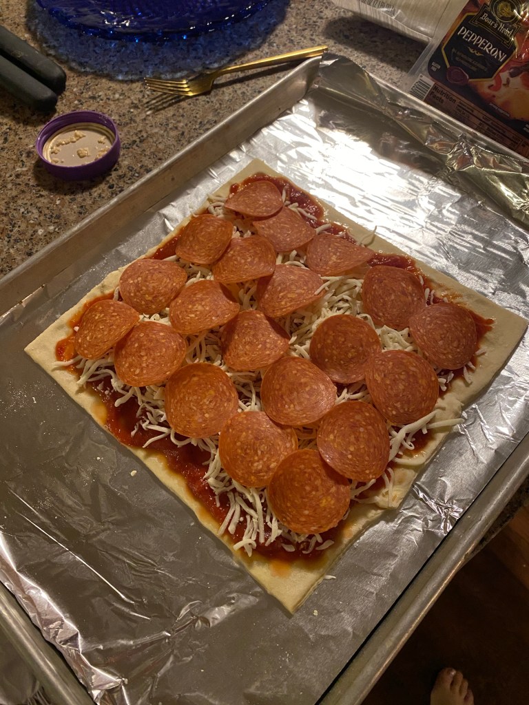 This is one of those instagram recipes that looks amazing! I’m all about the pizza related recipes and this one did not disappoint. The source of this recipe was Buzzfeed Tasty. The recipe shows cutting the puff pastry into a circle but I went ahead and just kept the square shape.