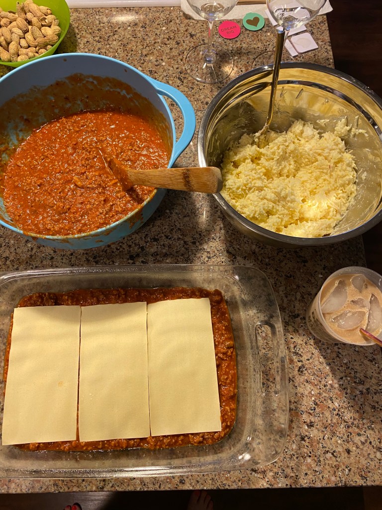 We used the recipe on the sloppy joe mix can. Brian loves sloppy joes. At the beginning of quarantine times I stocked up on ground beef but made the mistake of freezing the whole 3lb. pack all at once. In retrospect I should have used the vacuum sealer to break this up so I could thaw smaller amounts. The way it was, we had to thaw all three pounds and use them before they went bad. So we decided on Sloppy Joe’s and a massive lasagna.