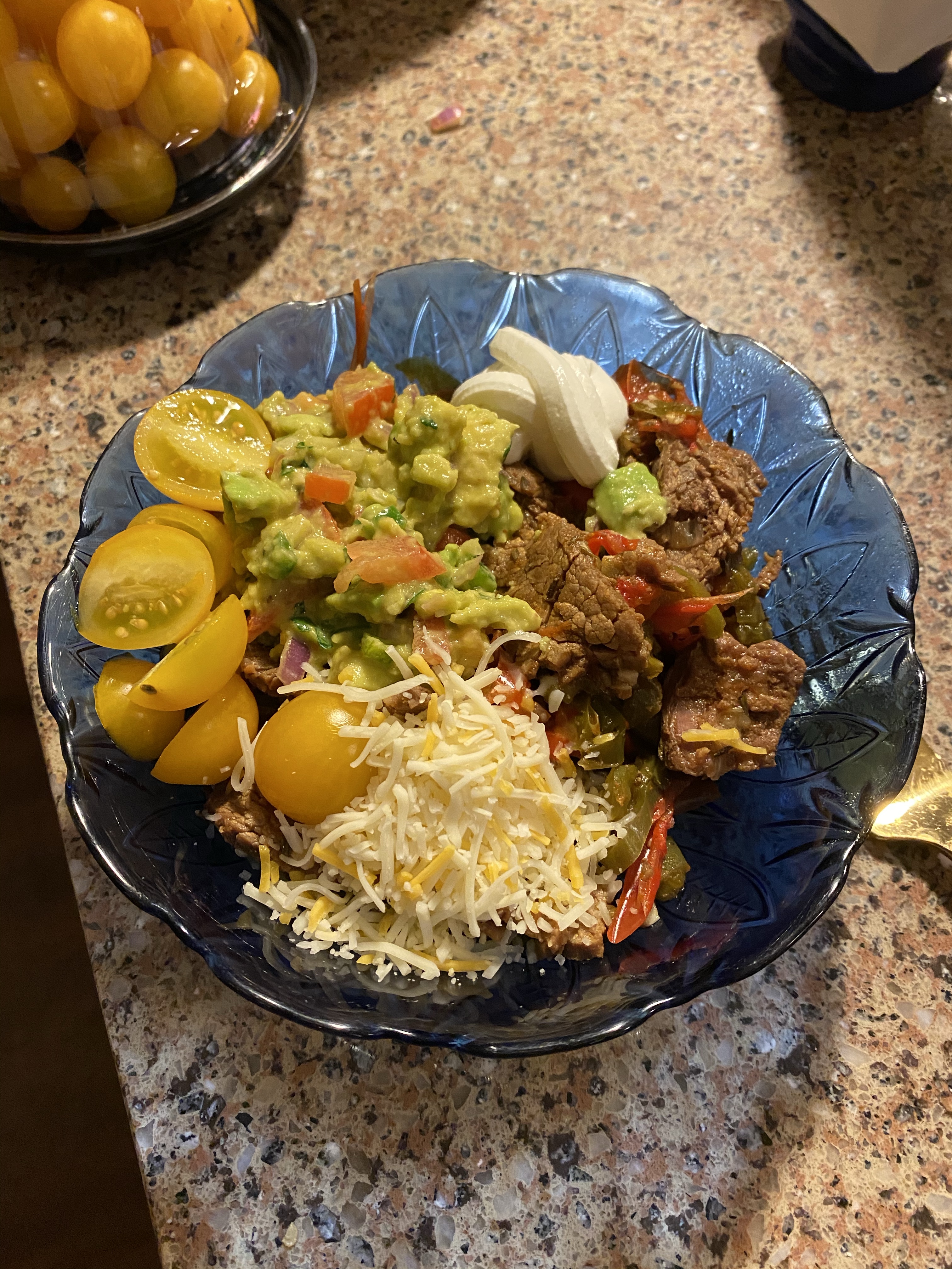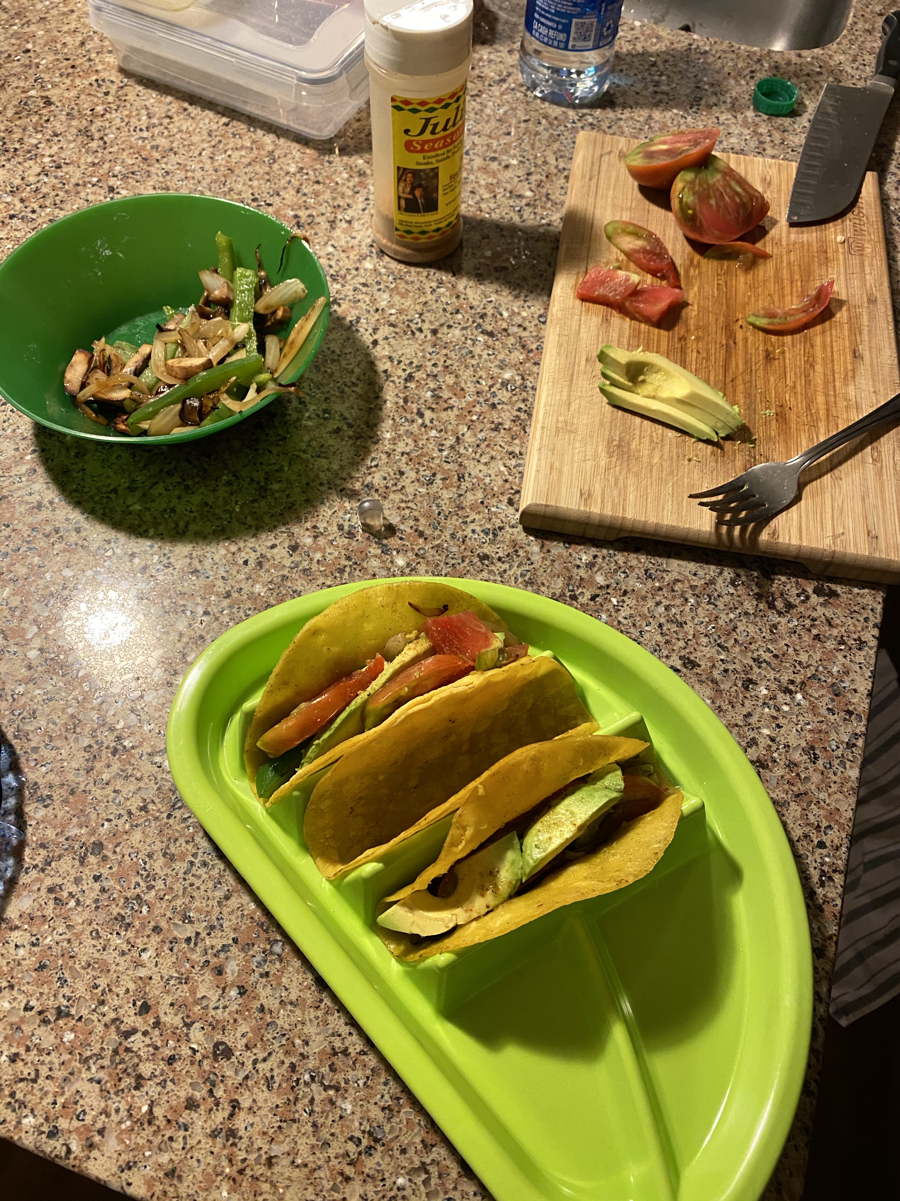 Vegetables – greens, salads, veggie tacos, air fryer things, and raw veggies.
