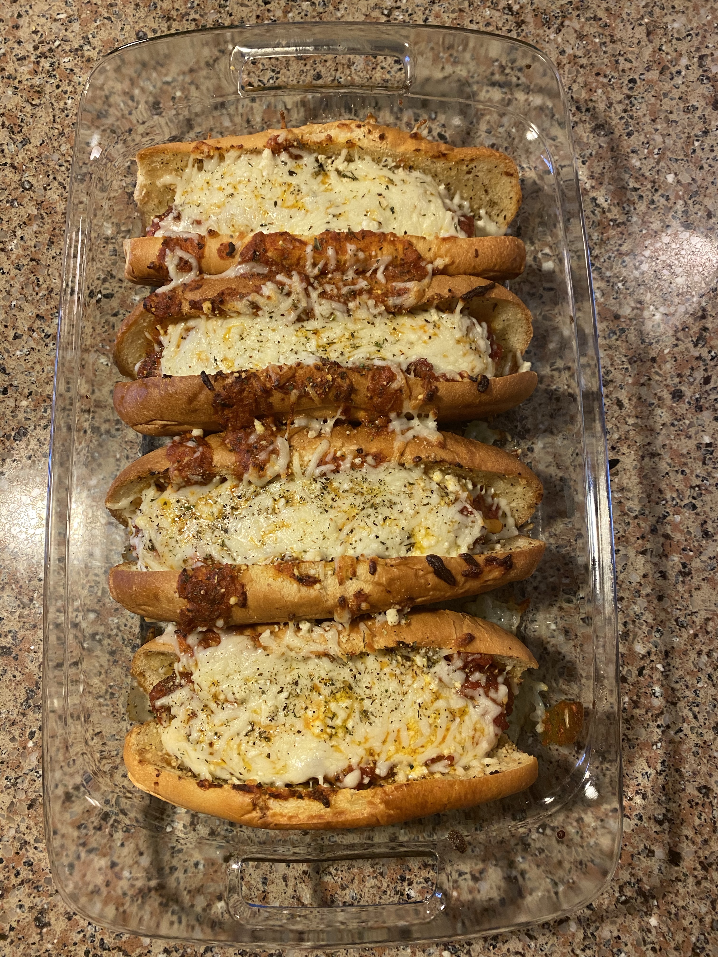 Our first recipe in this series is a sausage pizza sub! Brian found a video on TikTok that was for a cheese stuffed sausage dish. We then took it to another level with garlic bread style hoagie buns. This one was mostly Brian so most the times I say “we” it was actually him.
